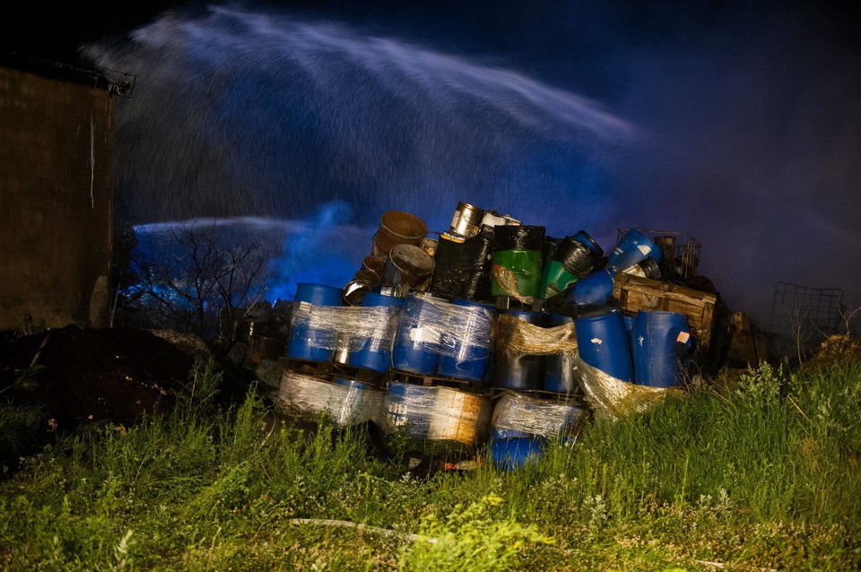 Otrzymaliśmy zgłoszenie o pożarze w poniedziałek o godzinie 20.43. Pożar wybuchł na placu składowym o wymiarach 155×60 metrów kwadratowych, a pożarem objęta została powierzchnia o wymiarach około 30×20 metrów kwadratowych. Chemikalia były składowane w zbiornikach różnej wielkości do 100 i 200 litrów na pryzmie – ustawione jeden na drugim, dochodziło to do trzech poziomów. Ogień nie rozprzestrzenił się na znajdujące się na działce budynki – hala magazynowa, portiernia i dwa ciągi garażowe po 30 i 40 przedziałów – powiedział nad ranem po kilku już godzinach trwania akcji gaśniczej dyżurny Komendy Wojewódzkiej Państwowej Straży Pożarnej w Toruniu.