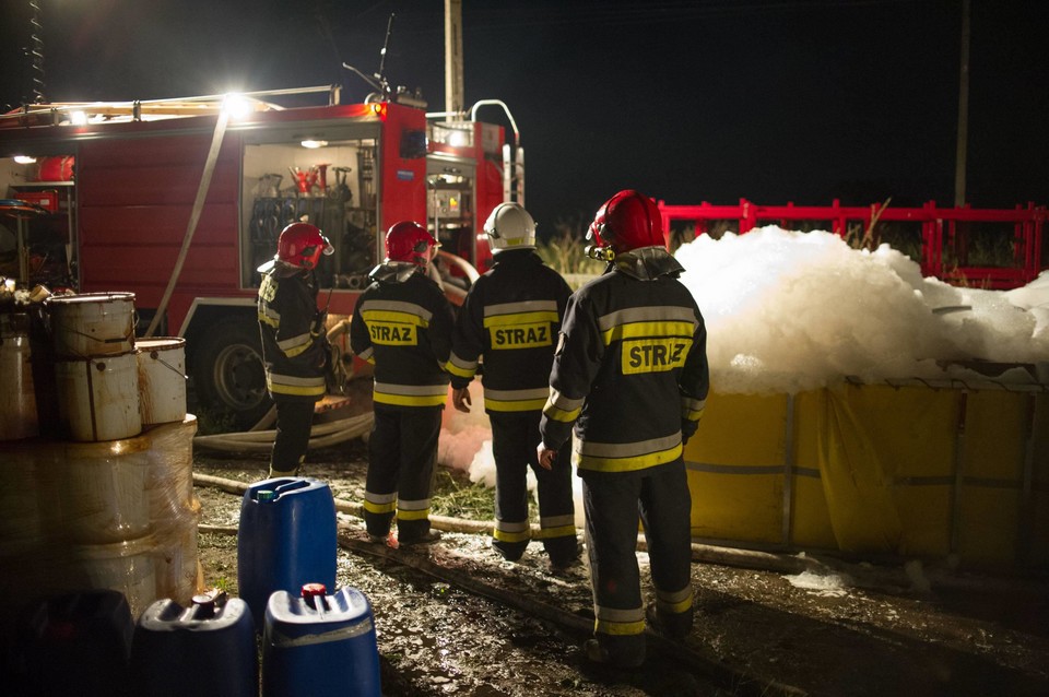 Pożar składowiska chemikaliów miejscowości Wszedzień koło Mogilna w woj. kujawsko-pomorskim, który wybuchł w poniedziałek wieczorem, został zlokalizowany, czyli nie przybiera na intensywności i nie rozprzestrzenia się – poinformowała nad ranem straż pożarna.